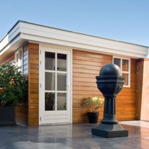 Strakke berging met Rabatdelen voorzien van een robuuste boeiboord met sierlijst.