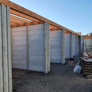 Opbouw betonnen wandconstructie en aanbrengen dakconstructie
