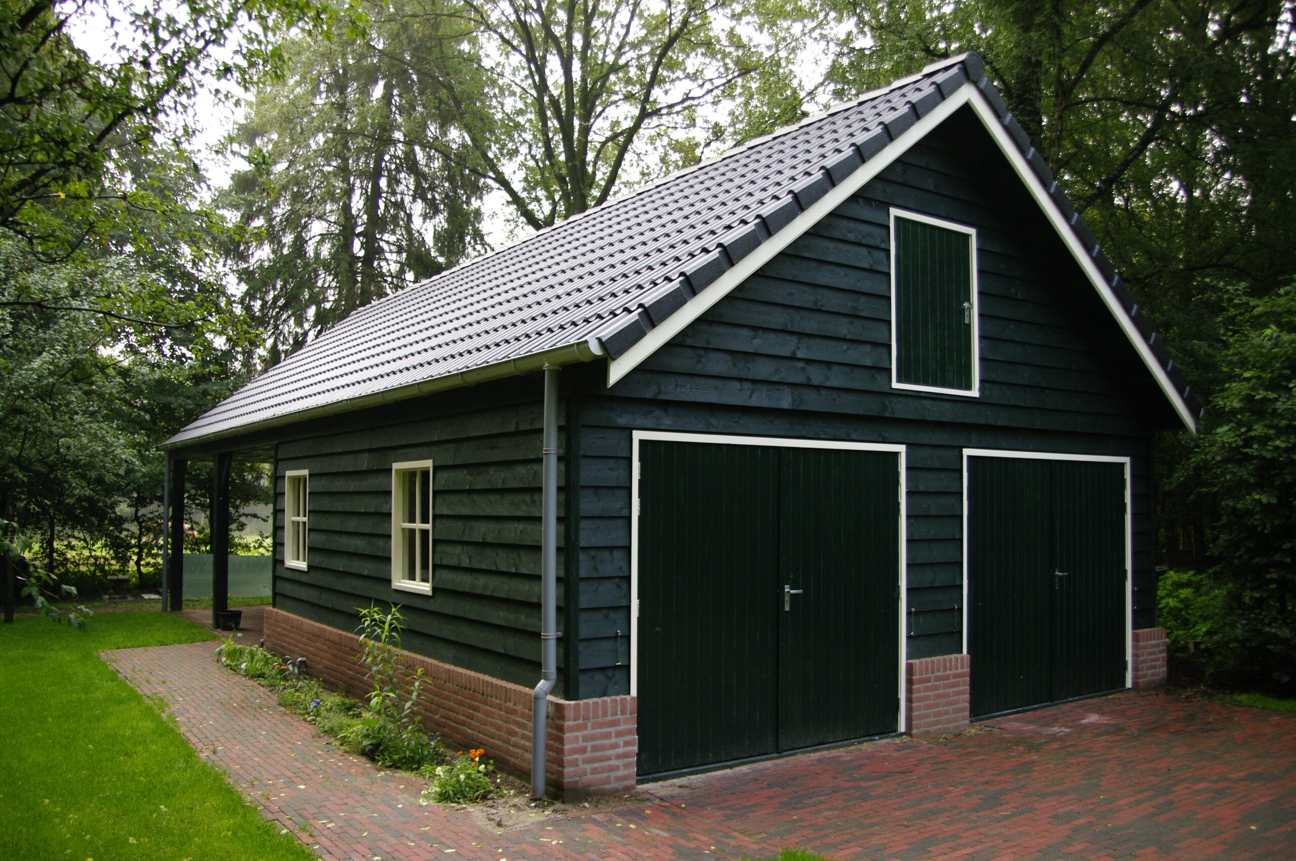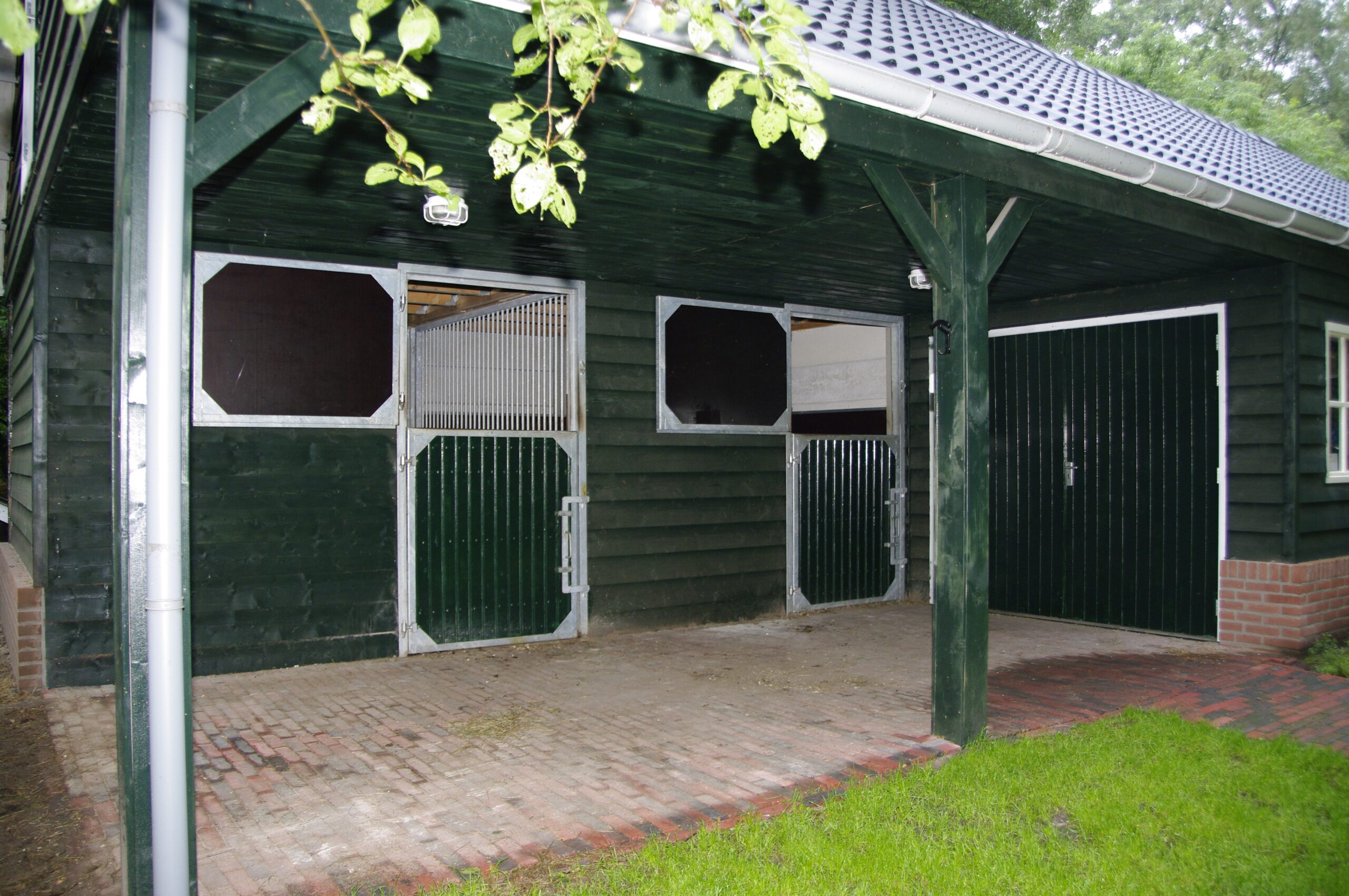 Paardenstal in combinatie met garage. Casco is opgebouwd uit een prefab systeem van betonnen staanders en betonplaten.