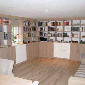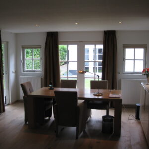 Dit tuinhuis wordt gebruikt als leef- en kantoorruimte.