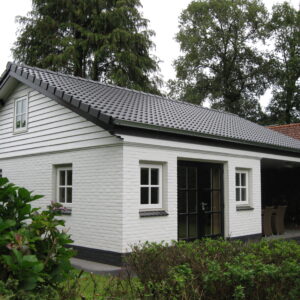 In Oisterwijk realiseerden wij dit tuinhuis dubbelwandig geïsoleerd en voorzien van metselwerk.