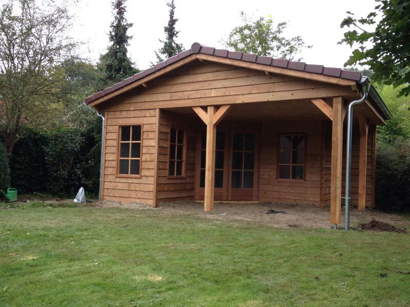 Dubbelwandig uitgevoerd tuinhuis d.m.v. een prefab betonnen casco afgewerkt met 18cm werkende Zweedse potdekseldelen aan de buitenzijde.
