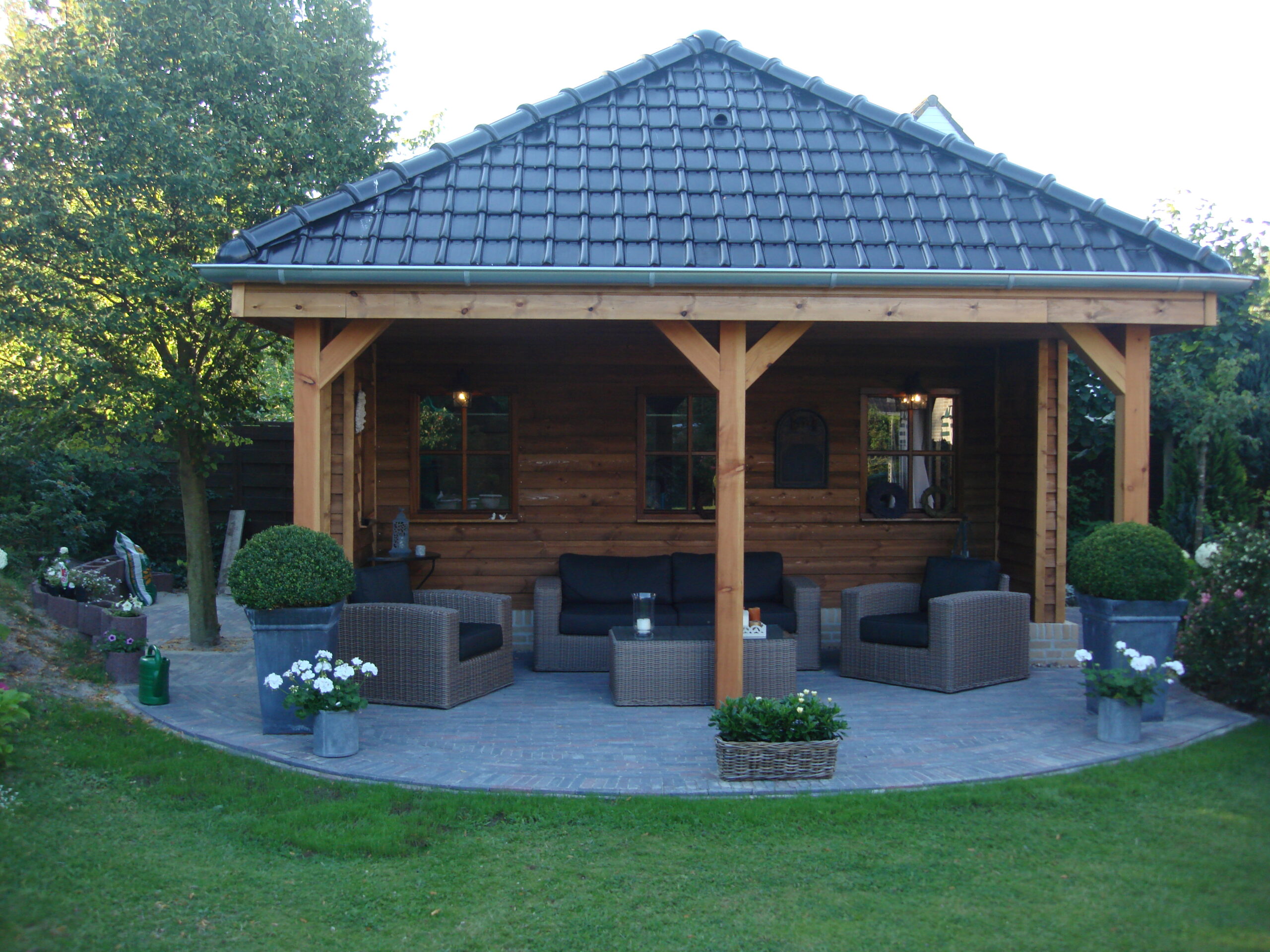 In Burgh-Haamstede realiseerden wij dit tuinhuis met zadeldak en potdekseldelen.